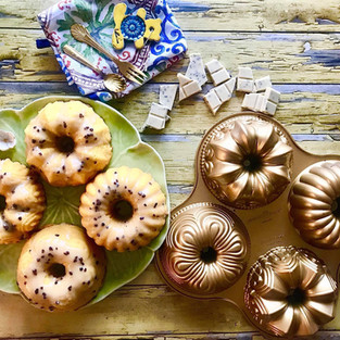Tortini mango e zenzero con glassa al cioccolato bianco e fave Tonka